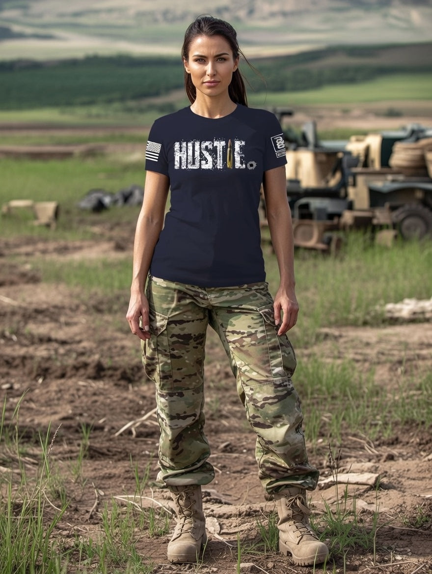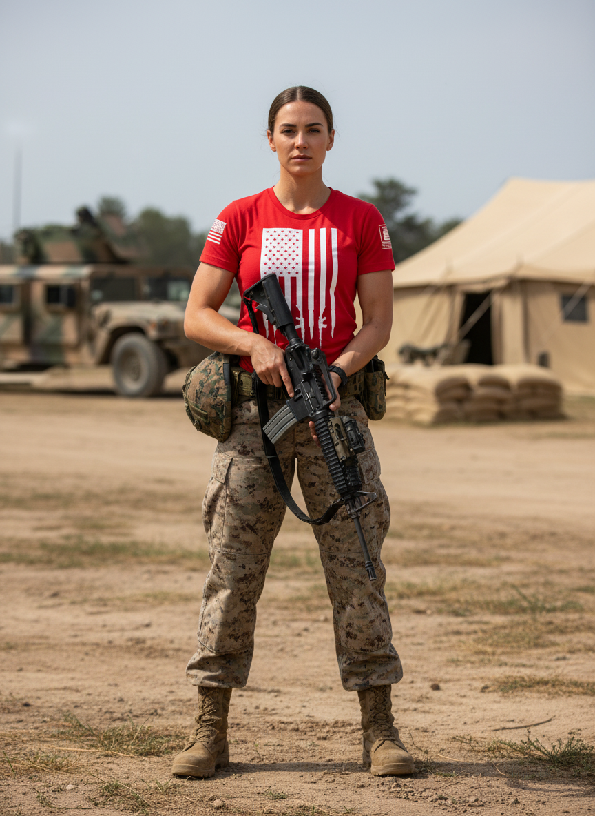 Battleraddle Gun And Bullet Flag Womens Cotton Crew Neck T Shirt