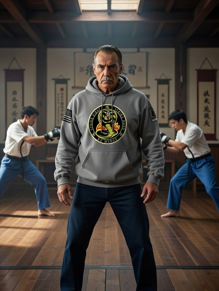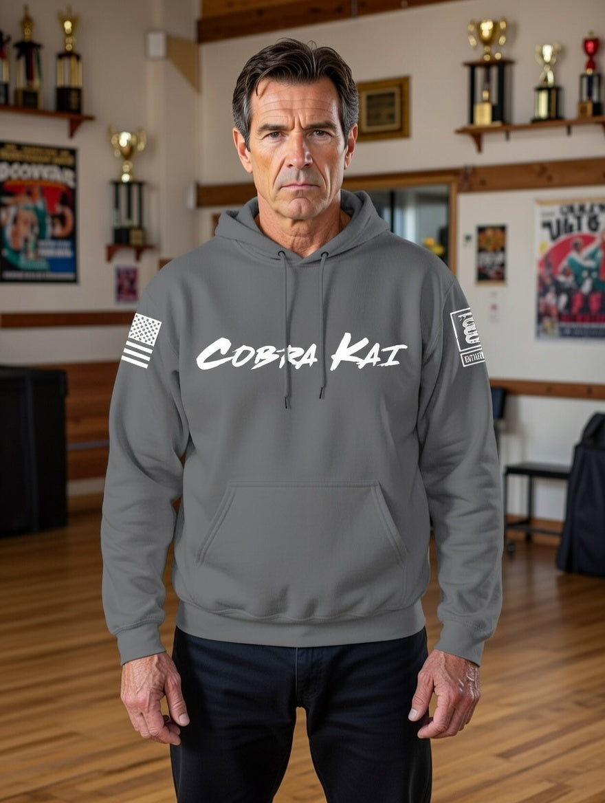 Battleraddle Cobra Kai Strike First Strike Hard No Mercy Black Sleeves Uni Cotton Blended Hoodie With Pockets