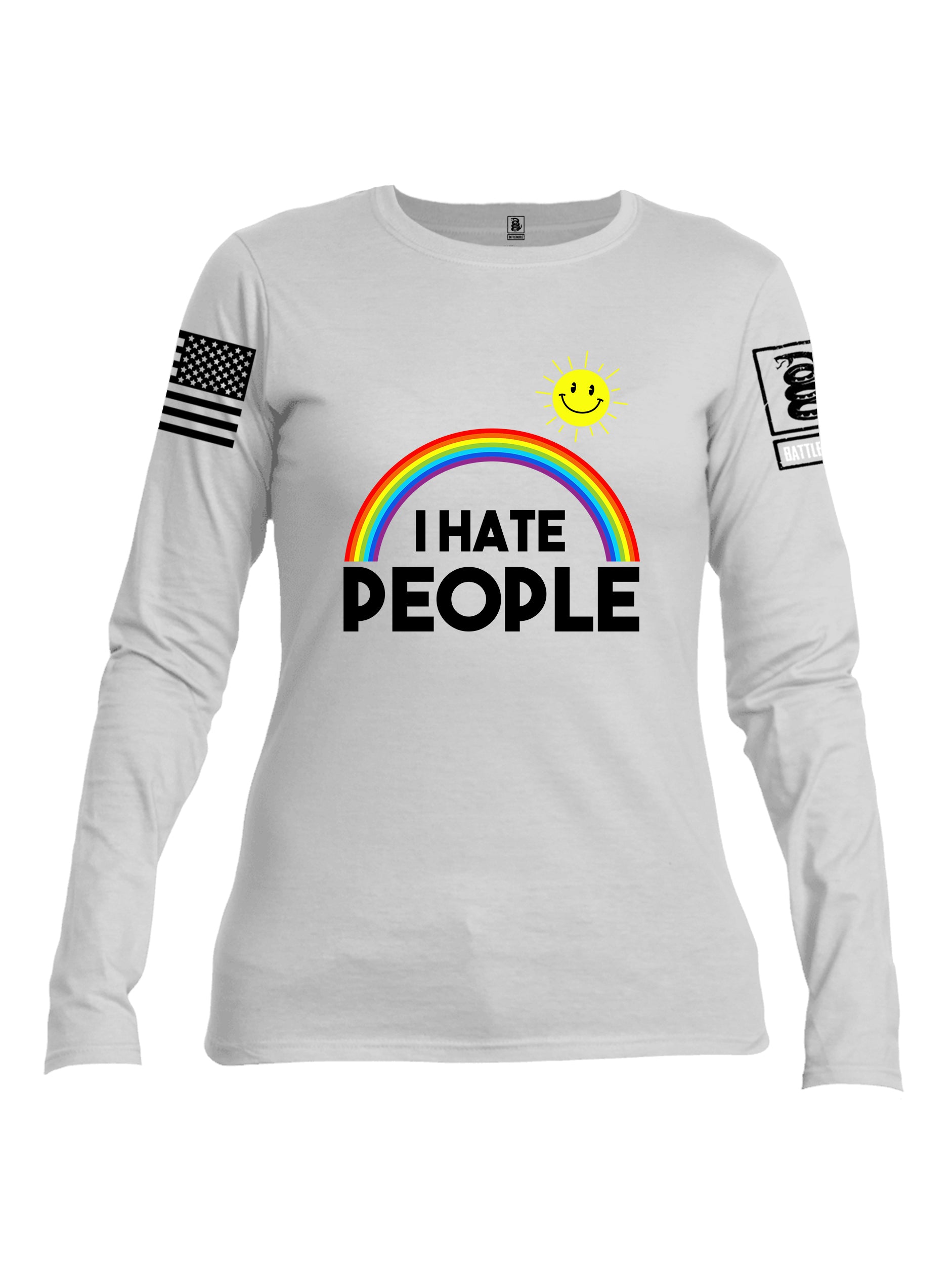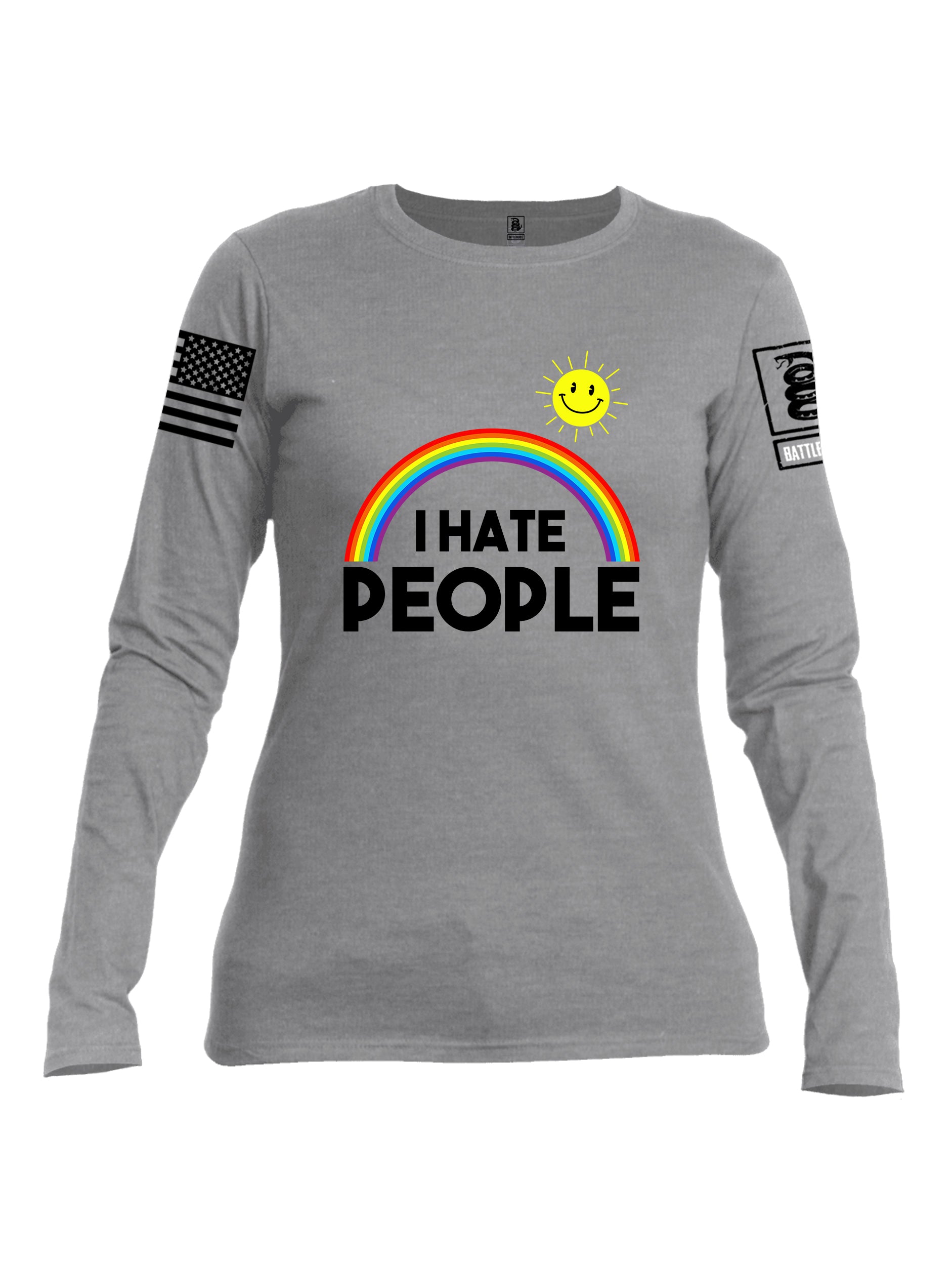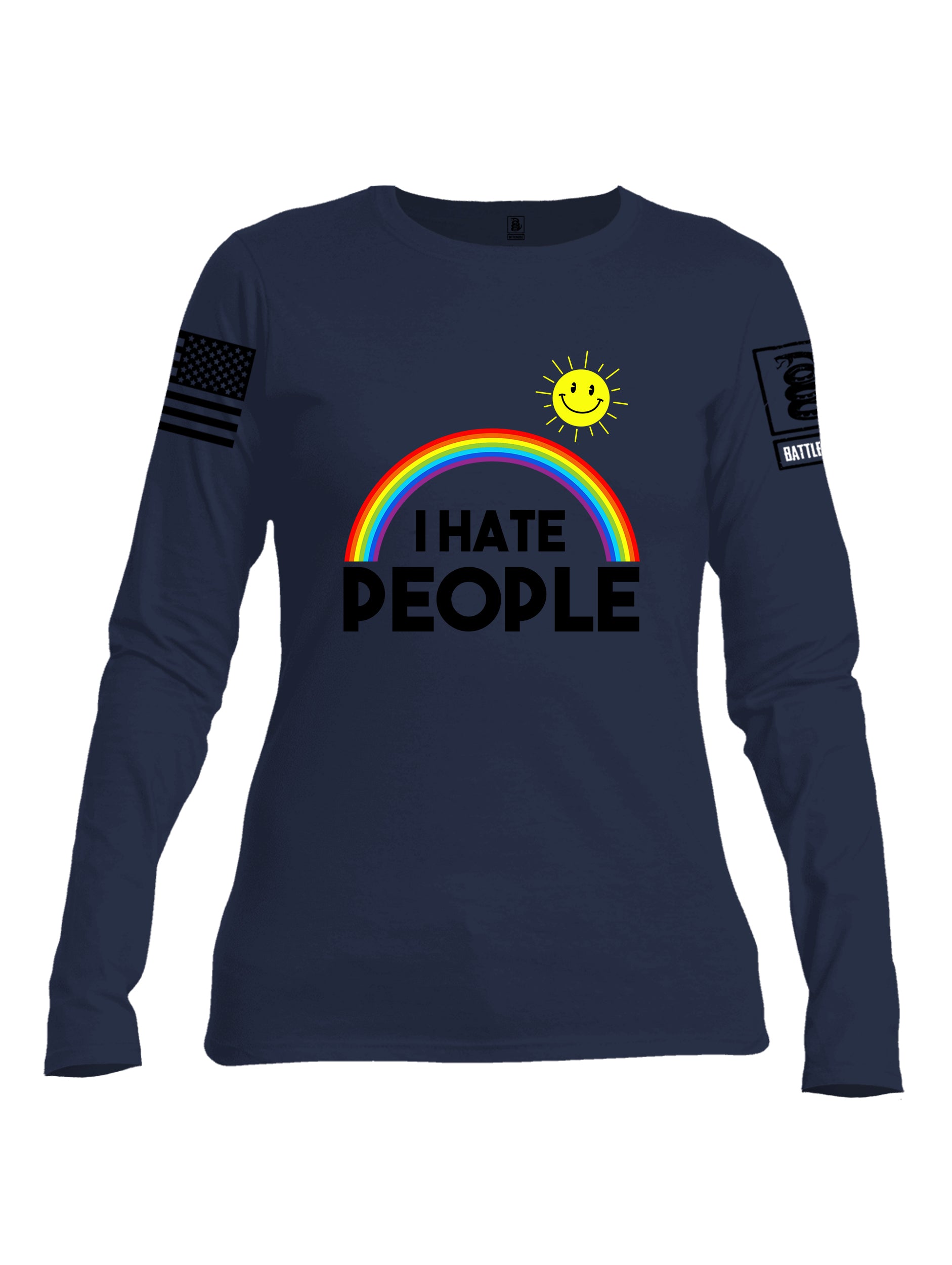 Battleraddle I Hate People Black Sleeves Women Cotton Crew Neck Long Sleeve T Shirt