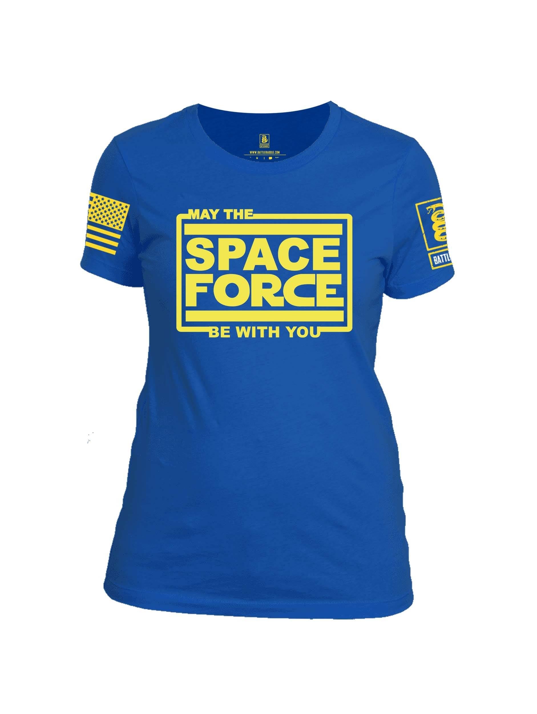 Battleraddle May The Space Force Be With You Yellow Sleeve Print Womens 100% Battlefit Polyester Crew Neck T Shirt