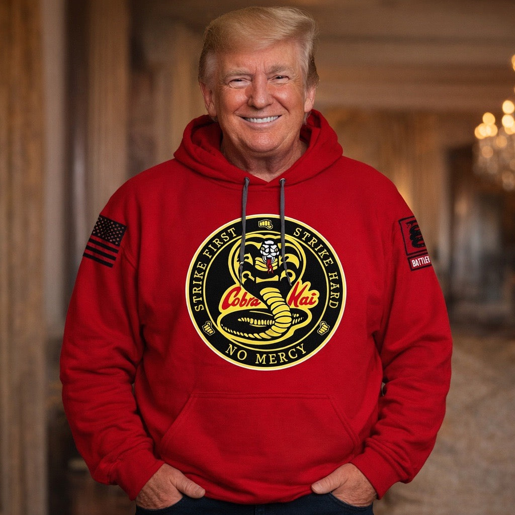 Battleraddle Cobra Kai Strike First Strike Hard No Mercy Black Sleeves Men Cotton Crew Neck T-Shirt