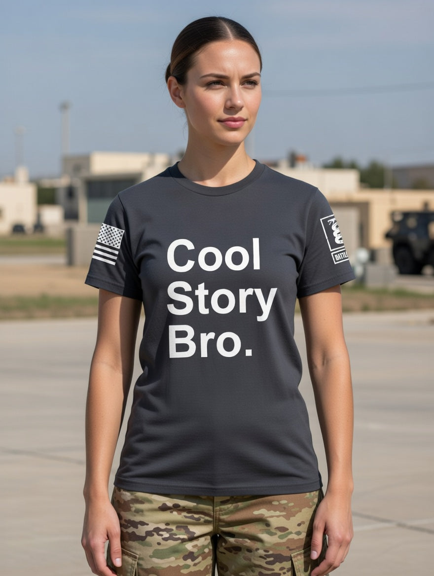 Battleraddle Cool Story Bro White Sleeve Print Womens Cotton Crew Neck T Shirt