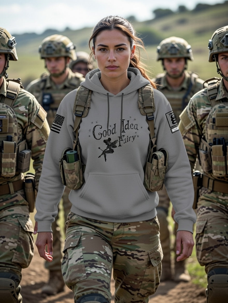 Battleraddle Good Idea Fairy Black Black Sleeves Uni Cotton Blended Hoodie With Pockets