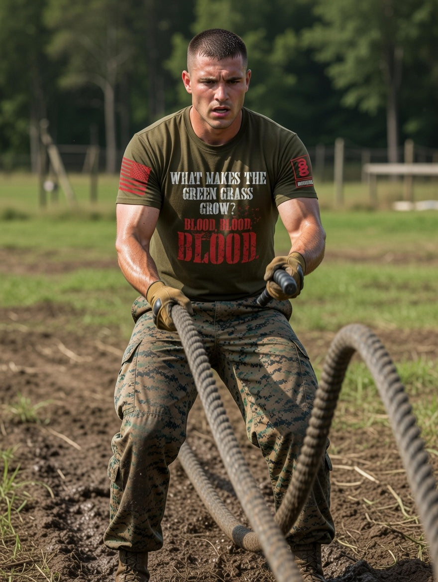 Battleraddle What Makes The Green Grass Grow Blood Blood Blood Red Sleeve Print Mens Cotton Crew Neck T Shirt