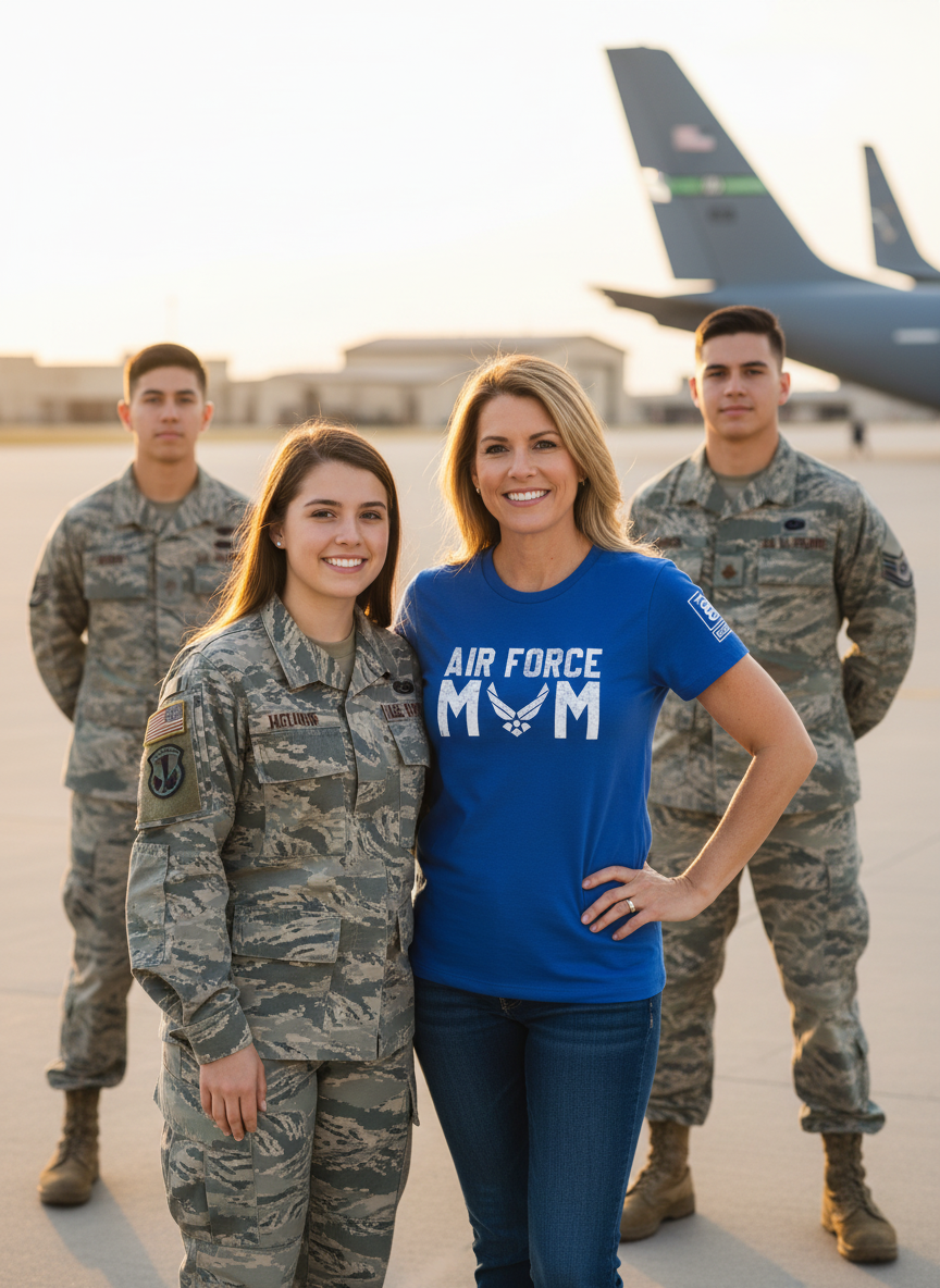 Battleraddle Air Force Mom White Sleeves Women Cotton Crew Neck T-Shirt