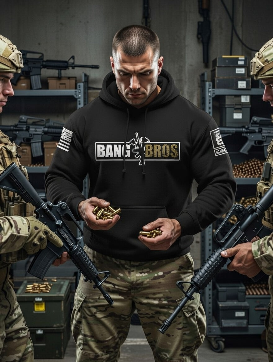 Battleraddle Bat Wing AR15 Bang Bros Brass Sleeve Print Mens Blended Hoodie With Pockets