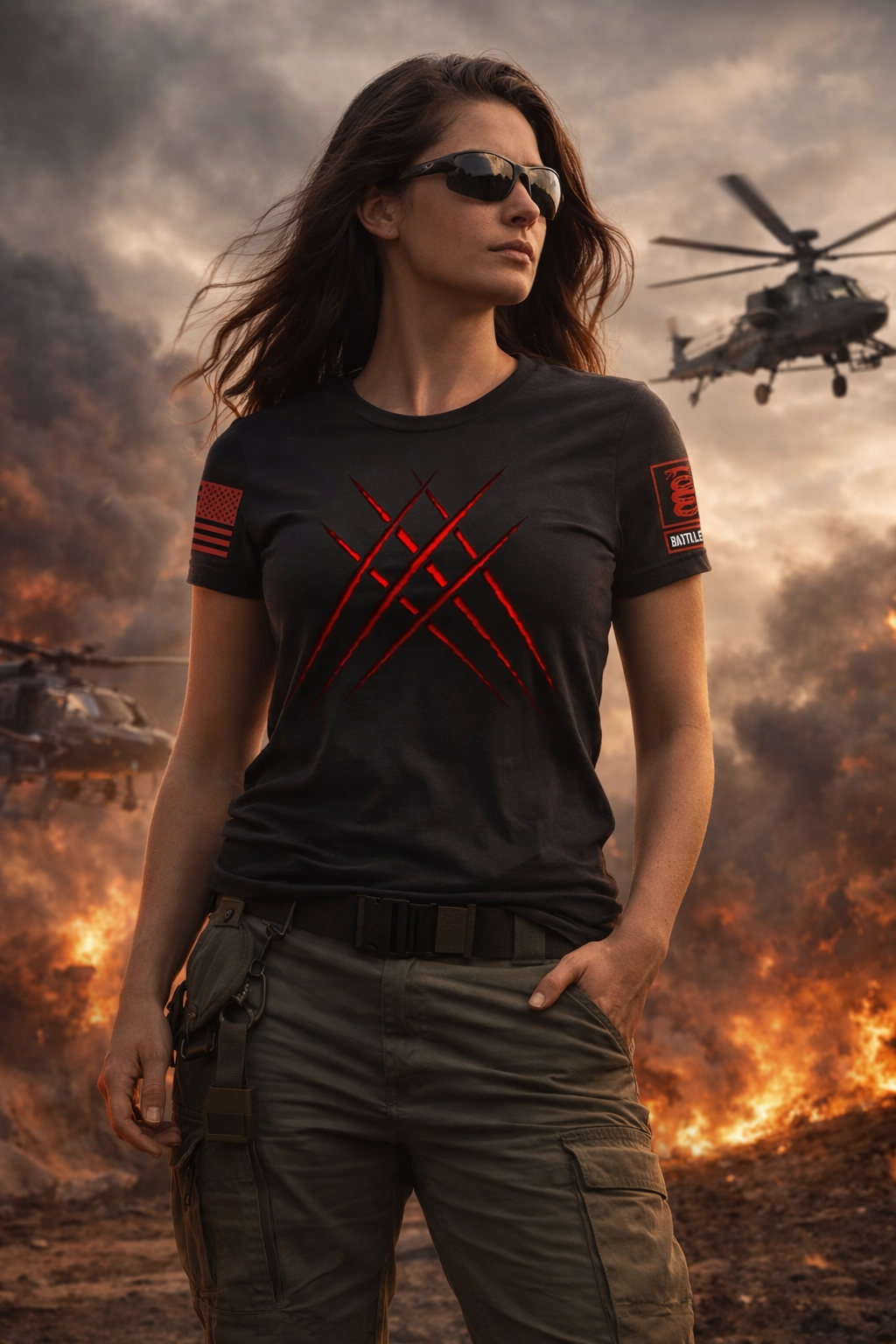 Battleraddle Wolve Adamantium Claws Red Sleeve Print Womens Cotton Crew Neck T Shirt