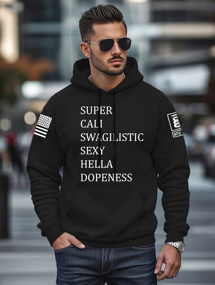 Battleraddle Super Cali Swagilistic Sexy Hella Dopeness White Sleeves Uni Cotton Blended Hoodie With Pockets