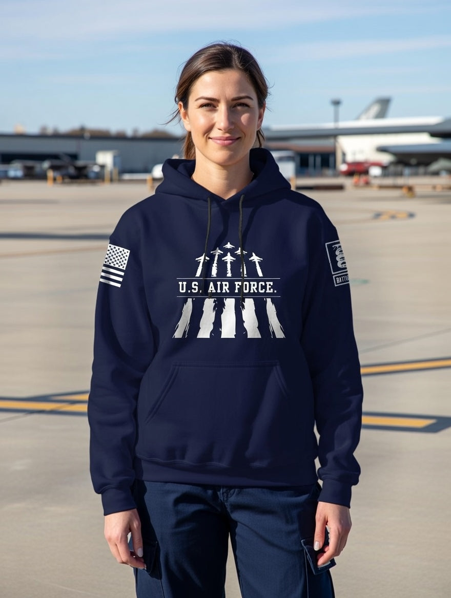 Battleraddle U.S. Air Force White Sleeves Uni Cotton Blended Hoodie With Pockets