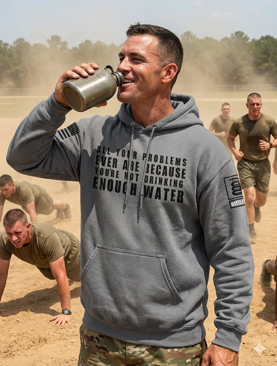 Battleraddle All Problems Ever Are Because You're Not Drinking Enough Water Black Sleeve Print Mens Blended Hoodie With Pockets
