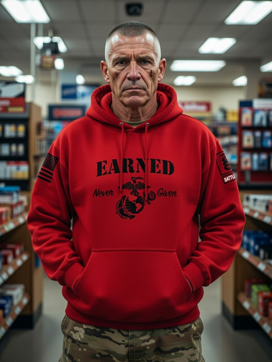 Battleraddle Earned Never Given Black Sleeves Uni Cotton Blended Hoodie With Pockets