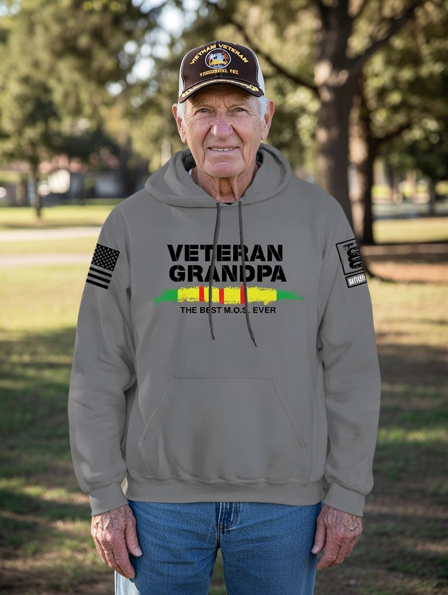 Battleraddle Veteran Grandpa Black Sleeves Uni Cotton Blended Hoodie With Pockets