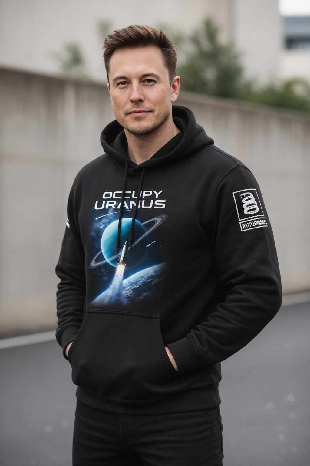 Battleraddle Elon Mock Occupy Uranus White Sleeves Uni Cotton Blended Hoodie With Pockets