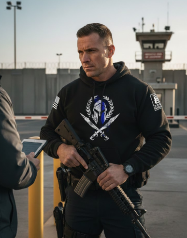Battleraddle Bat Police Hero Blue Line USA Flag Blue Sleeve Print Mens Blended Hoodie With Pockets