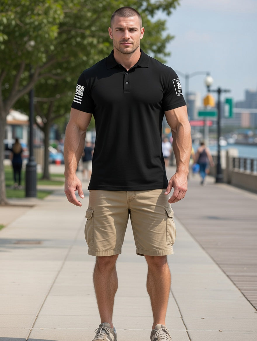 Battleraddle Professional Athletic Polo Iconic Gadsden Snake Basic Line Yellow Snake Patch Front Mens Cotton Jersey Polo Tee