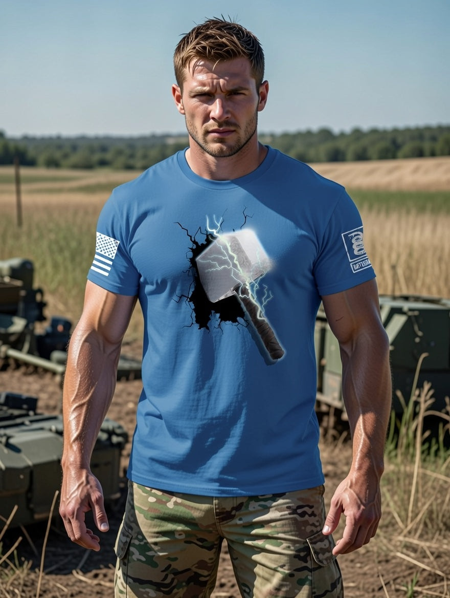 Battleraddle Thorific Hammer White Sleeve Print Mens Cotton Crew Neck T Shirt