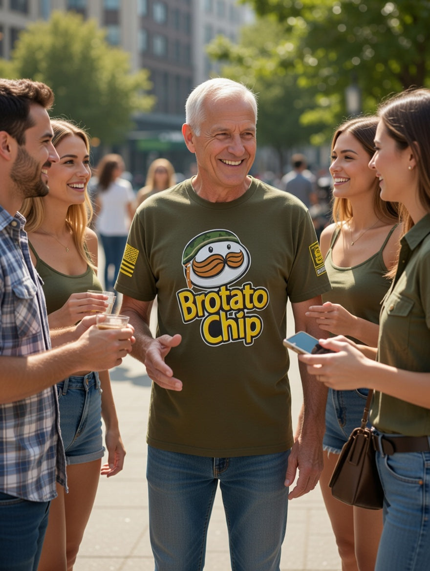 Battleraddle Brotato Chip Yellow Sleeve Print Mens Cotton Crew Neck T Shirt