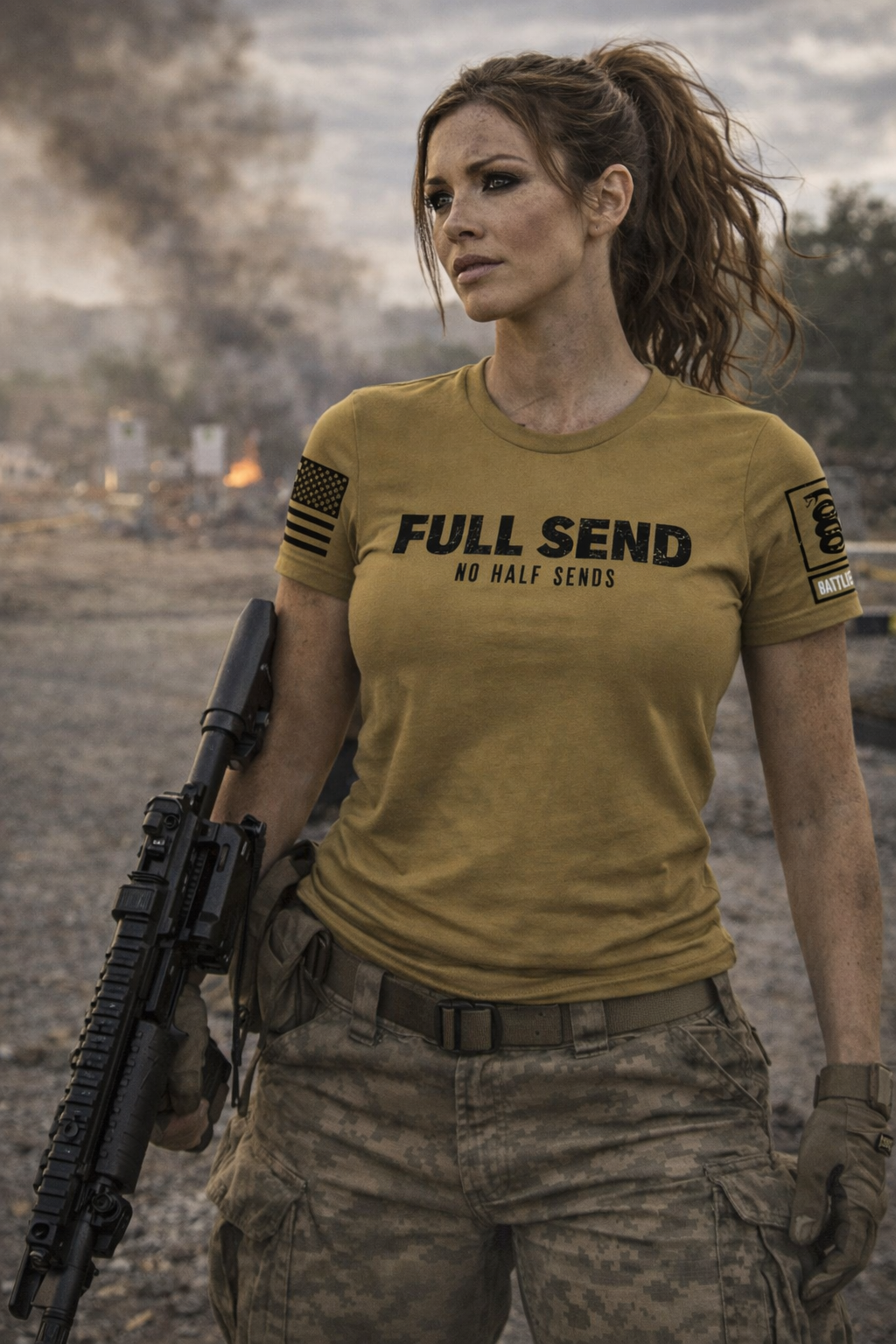 Battleraddle Full Send No Half Sends Black Sleeves Women Cotton Crew Neck T-Shirt