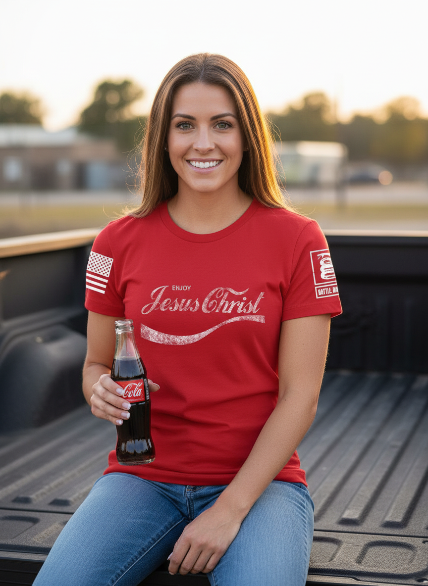 Battleraddle Enjoy Jesus Christ White Sleeve Print Womens Cotton Crew Neck T Shirt