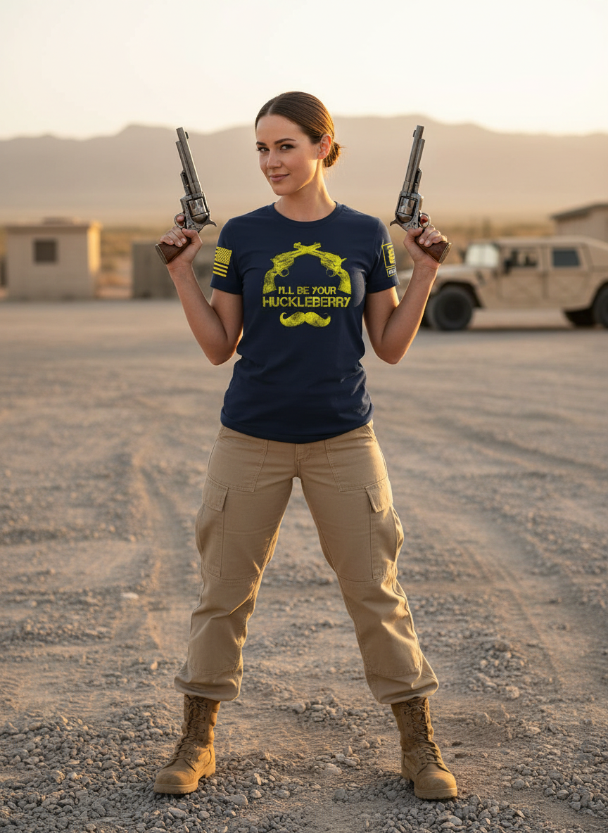 Battleraddle I'll Be Your Huckleberry Yellow Sleeve Print Womens Cotton Crew Neck T Shirt