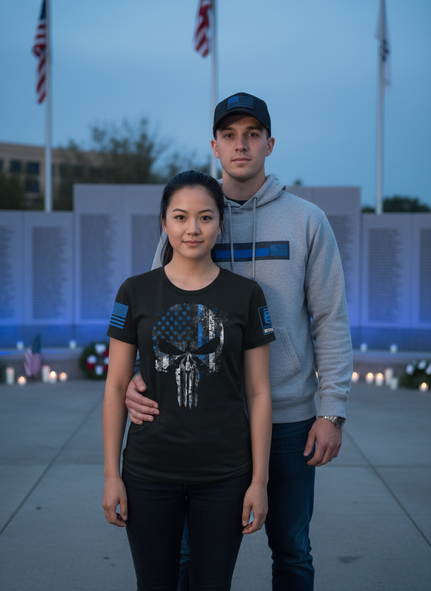 Battleraddle Expounder Thin Blue Line Blue Sleeve Print Womens Cotton Crew Neck T Shirt